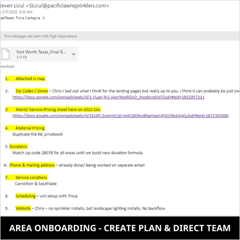 When I partnered with the franchisor in 2017, there was no onboarding process. I took the lead and built out and documented a comprehensive process, refining it each time we added a franchise and learned something new. I manage the entire onboarding process, from initial research to full integration, ensuring every step is meticulously handled. I develop strong bonds with franchisees, tailoring the process to their needs, and maintain a master plan for each area to ensure strategic growth.